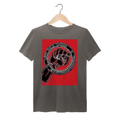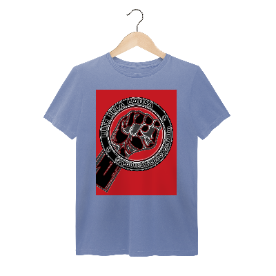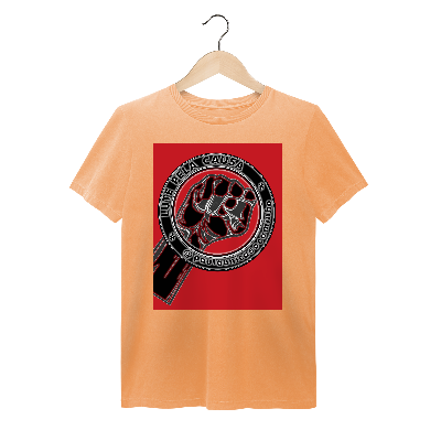 Se a caneca é o manifesto que cabe na mão, a camiseta é a bandeira que veste o corpo. A proposta é transformar o peito de cada pessoa em um suporte de resistência visual. Seguindo a mesma linguagem dos arquivos — palavras curtas, tipografia forte, repetição de símbolos e a assinatura digital transformada em identidade de rua —, as camisetas funcionam como um uniforme não oficial de quem abraça a pauta.